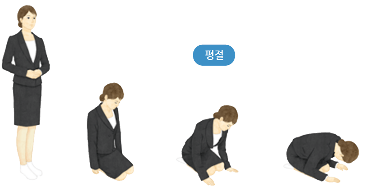 ④ 몸을 앞으로 깊이 숙여 절한다.
