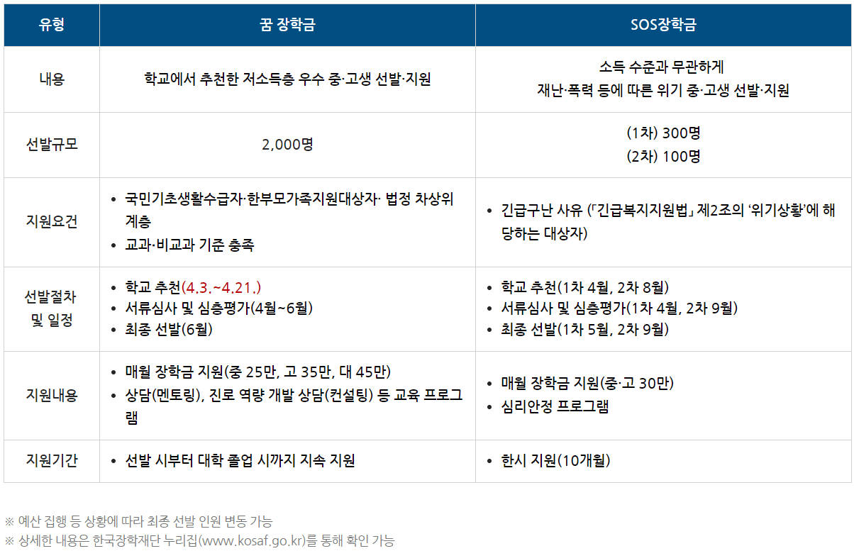 - [꿈장학금] 4월 3일(월) 09시 ~ 4월 21일(금) 18시