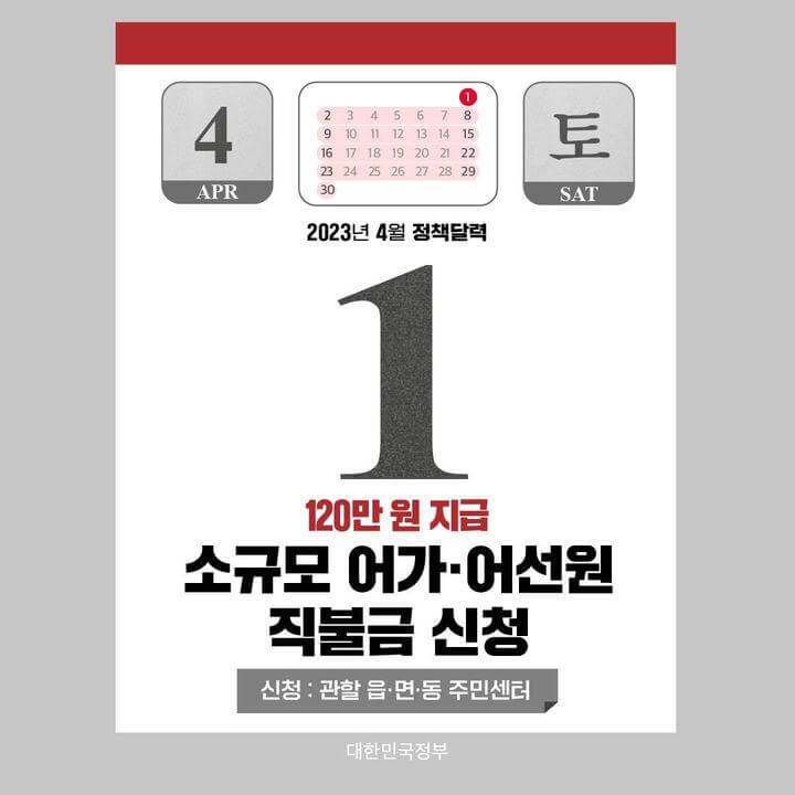 4월 1일부터 5월 31일까지 소규모 어가 및 어선원 직불금 신청이 진행됩니다.