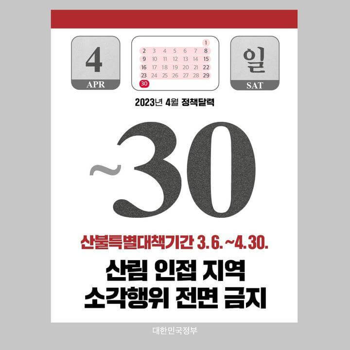 3월 6일부터 4월 30일은 산불특별대책기간입니다.