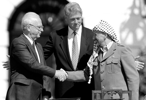 1994년 PLO 아라파트와 이스라엘 라빈 총리와 부총리였던 시몬 페레스가 노벨평화상을 공동수상했습니다.